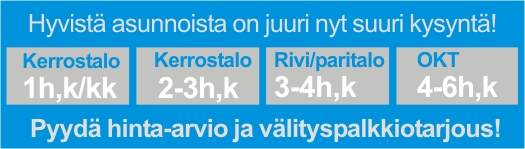 Asiantuntevan yhteistyökumppanin avulla sinäkin varmistat elämäsi tärkeimmän kaupan. Juuri nyt asuntokaupassa korostuu kokeneen välittäjän työpanos erityisen paljon - pätevä hinta-arvio ja asiakkaan kodinvaihtosuunnitelman hallitseminen alusta loppuun vaatii aktiivisuutta ja kokemusta. Meiltä saat kokeneen ja asiantuntevan välittäjän palvelut kun suunnittelet kodinvaihtoa. Arviokäyntimme asuntosi toteutuvasta kauppahinnasta ja myyntisuunnitelmasta on veloitukseton, ota yhteyttä ja sovi sinulle sopiva ajankohta. Teemme myös arviot ja tarvittaessa selvittelytyön kuolinpesien asuntoihin tai kiinteistöihin liittyen.